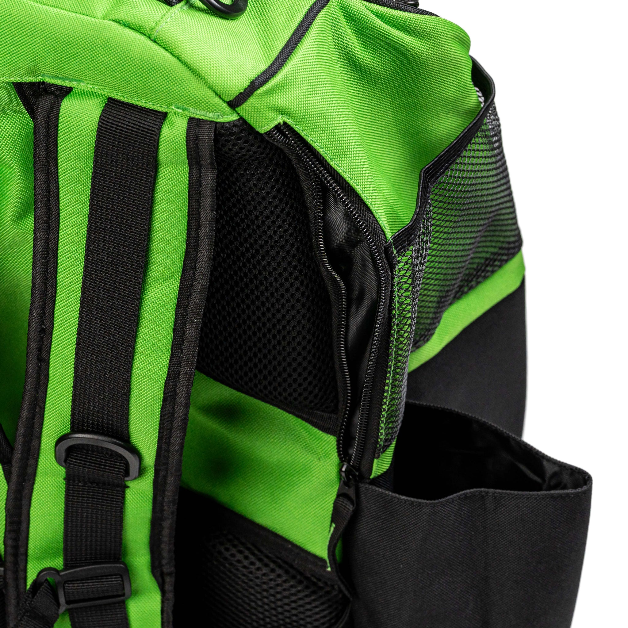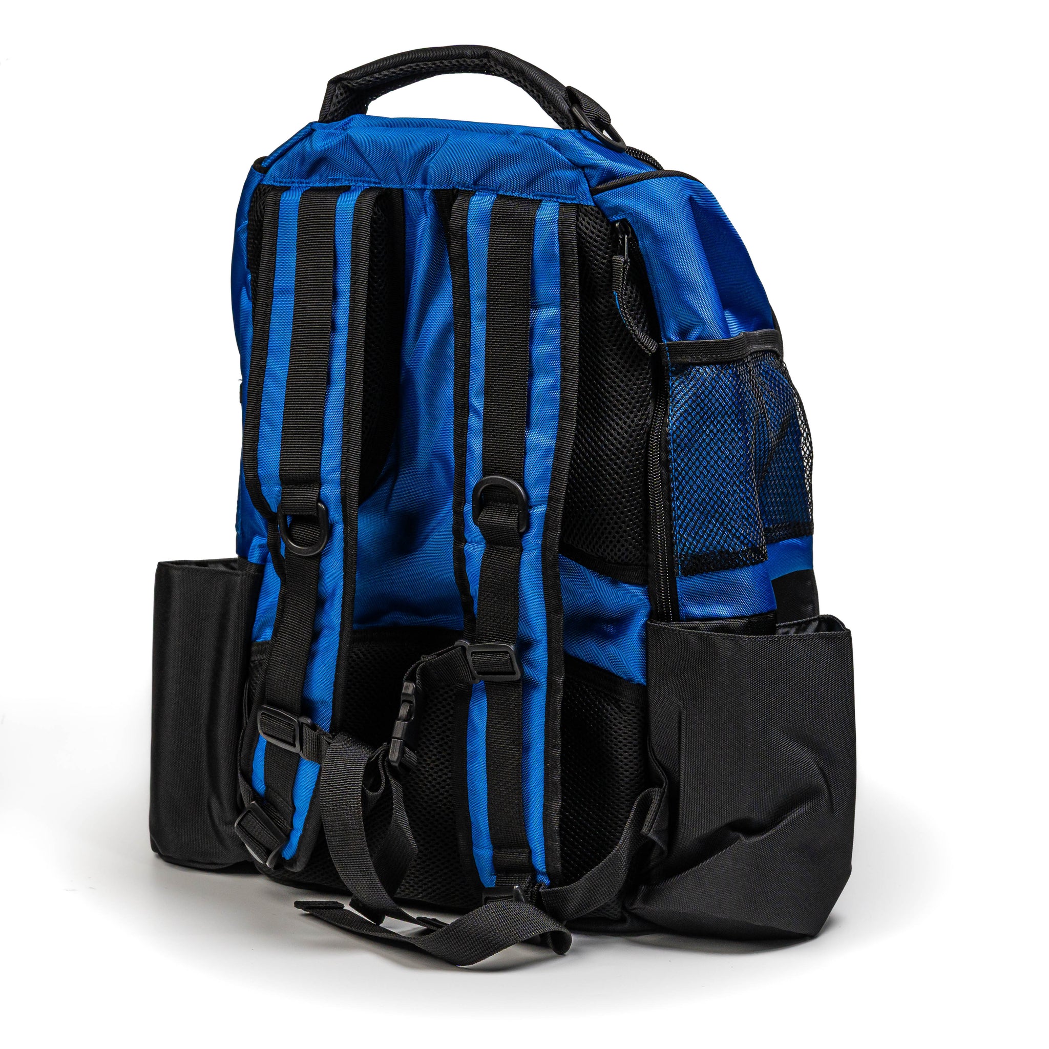 It's lightweight but packs everything you need, comfortably carrying 15 discs plus your putters. It has two solid water bottle carriers as well as plenty of side pockets and zip up compartments for your keys, pens, minis, towels and extras. The back offers both cushioned support and padded straps for additional comfort.